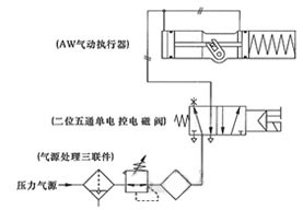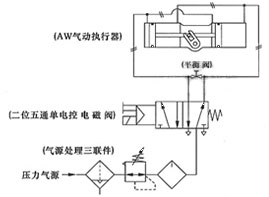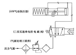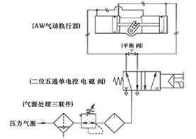 基本設(shè)計:氣動雙氣缸雙活塞拔叉式傳動機構(gòu);型號AWxx=雙作用式;型號AWxxS=單作用式(彈簧復(fù)位)。 |